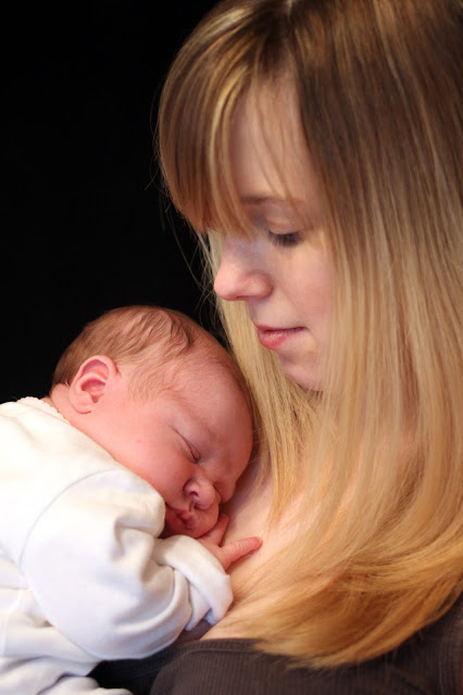 Claire and I decided to try and get some photos yesterday. I took photos within the first two weeks when Alice was born and as Megan is already nearly three weeks (tomorrow) we thought we'd better get some of Claire and Megan together. We'd really hoped to get a photo with Alice in as well but she told me "No, Grandma!" when I asked her if she'd like to sit with Mummy and Megan. She was far too busy playing to be bothered with having her photo taken. Hopefully we'll get one of the three of them soon as Claire would like a canvas for her lounge.